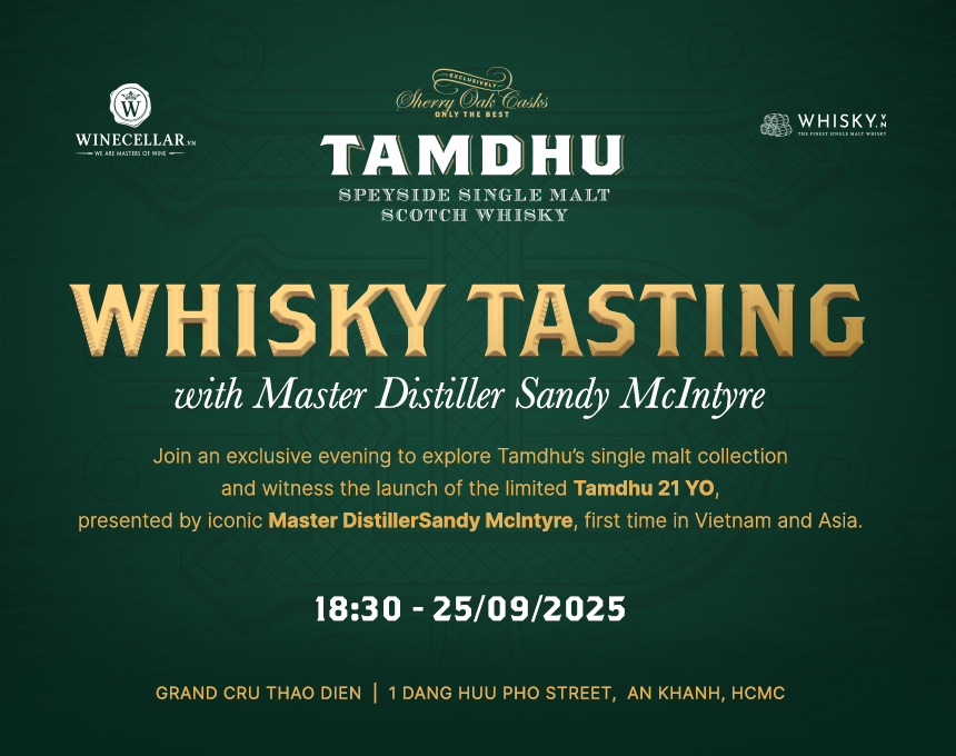 Một đêm đặc biệt để nâng tầm hiểu biết về whisky, thưởng thức trọn vẹn danh mục whisky single malt Tamdhu, bao gồm cả dòng Tamdhu 21 YO vừa ra mắt và trực tiếp giao lưu cùng Master Distiller Sandy McIntyre.